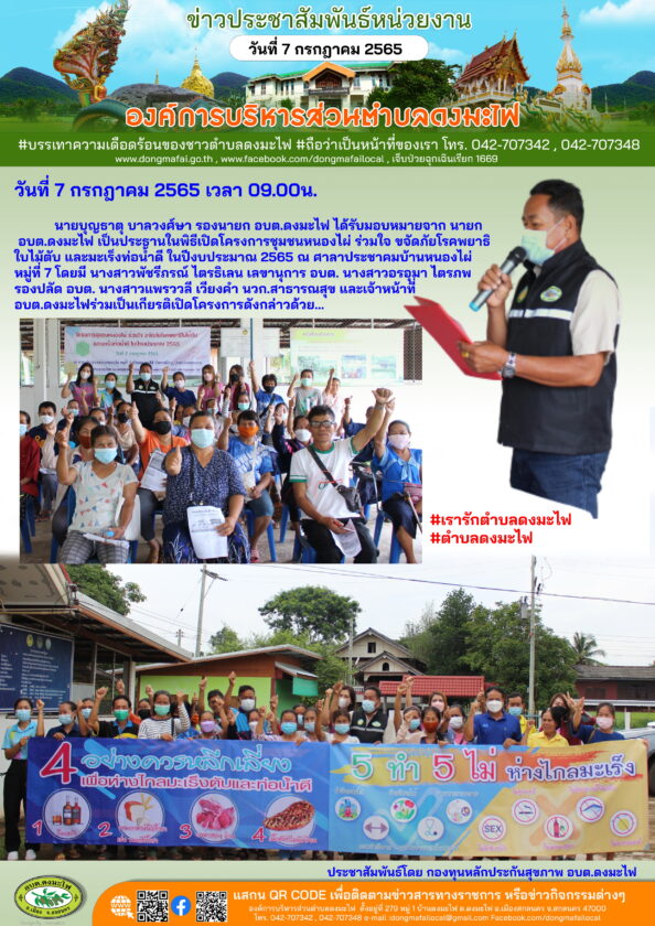 โครงการชุมชนหนองไผ่ ร่วมใจ ขจัดโรคพยาธิใบไม้ตับ และมะเร็งท่อน้ำดี ปี 2565ข่าวประชาสัมพันธ์, งานสาธารณสุข, ภาพกิจกรรม, สปสช.by จำนวนผู้เข้าชม : 441 FacebookFacebookXXLINELine