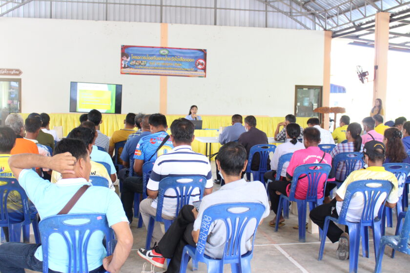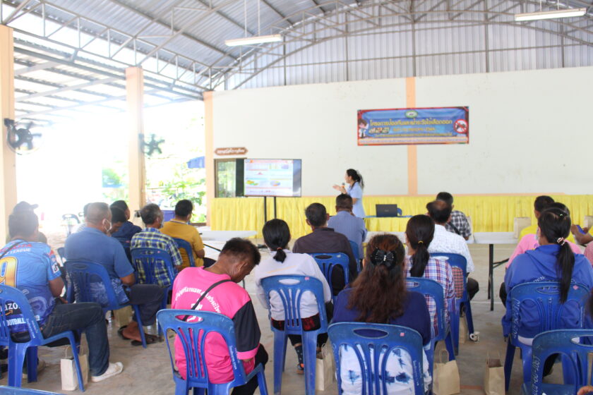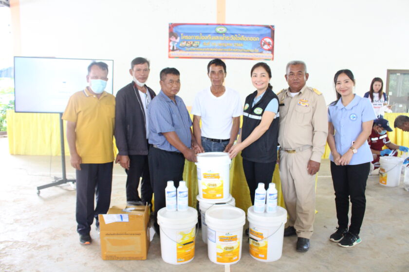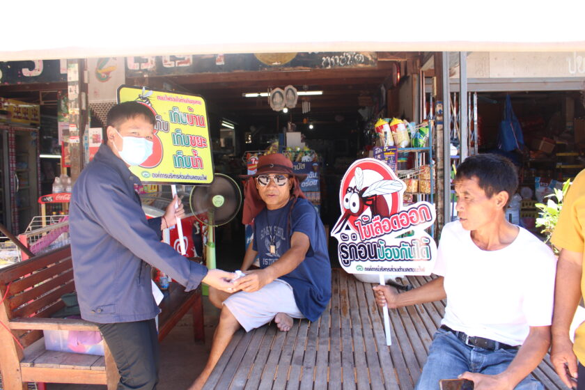ประชาชนถึงการกำจัดแหล่งเพาะพันธุ์ลูกน้ำยุงลาย เพื่อลดการเกิดโรคไข้เลือดออกในพื้นที่ตำบลดงมะไฟ รวมถึงการแจก