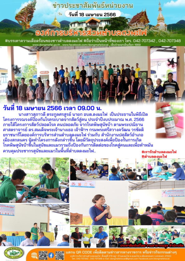 กิจกรรมโครงการรณรงค์ป้องกันโรคระบาดจากสัตว์สู่คน ปี 2566ข่าวประชาสัมพันธ์, งานสาธารณสุข, ภาพกิจกรรมby จำนวนผู้เข้าชม : 153 FacebookFacebookXXLINELine
