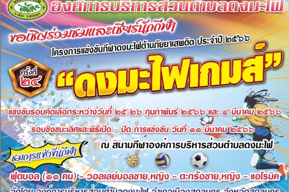 ขอเชิญชวนร่วมส่งกำลังใจเชียร์นักกีฬา ดงมะไฟต้านภัยยาเสพติด ประจำปี2566ข่าวประชาสัมพันธ์by วิทยา คิดร่วม28 กุมภาพันธ์ 2023