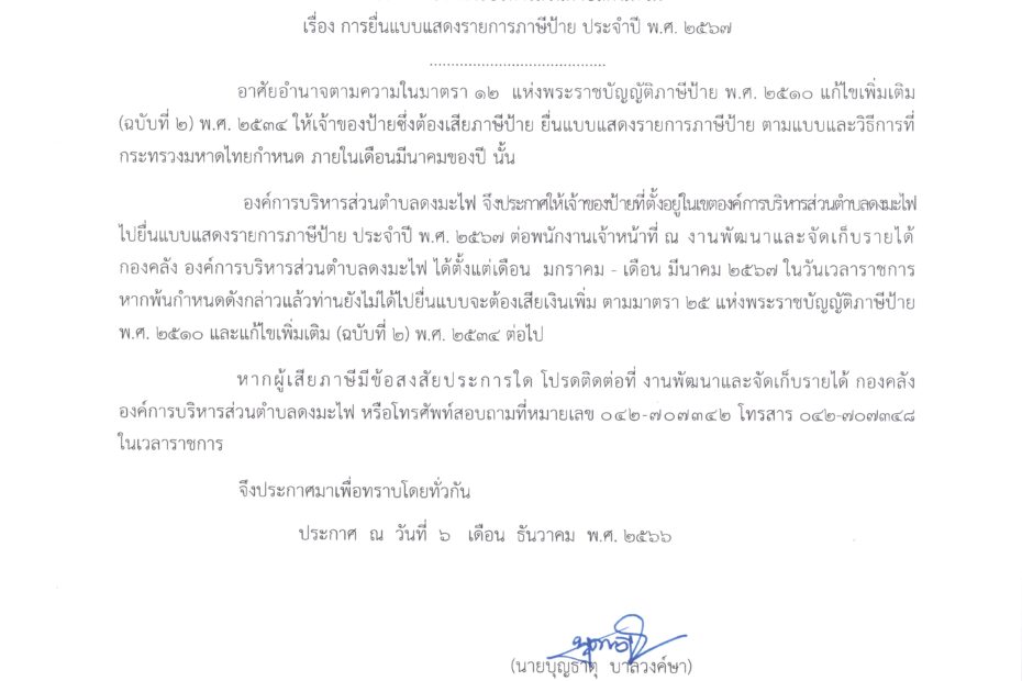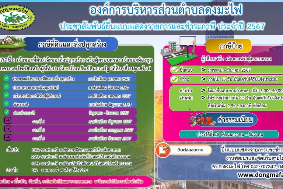 ประกาศองค์การบริหารส่วนตำบลดงมะไฟ เรื่อง ประชาสัมพันธ์โครงการจัดเก็บภาษีนอกสถานที่ ประจำปี พ.ศ. 2567ข่าวประชาสัมพันธ์by กองคลัง อบต.ดงมะไฟ11 มีนาคม 2024
