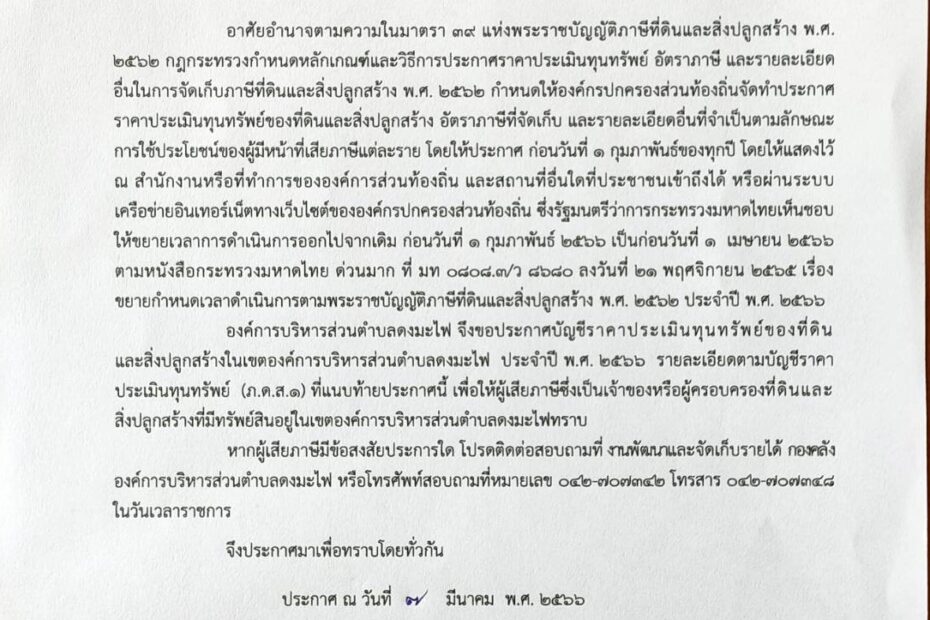 ประกาศองค์การบริหารส่วนตำบลดงมะไฟ เรื่อง บัญชีราคาประเมินทุนทรัพย์ของที่ดินและสิ่งปลูกสร้างในเขตองค์การบริหารส่วนตำบลดงมะไฟ ประจำปี พ.ศ 2567ข่าวประชาสัมพันธ์by กองคลัง อบต.ดงมะไฟ29 กุมภาพันธ์ 2024