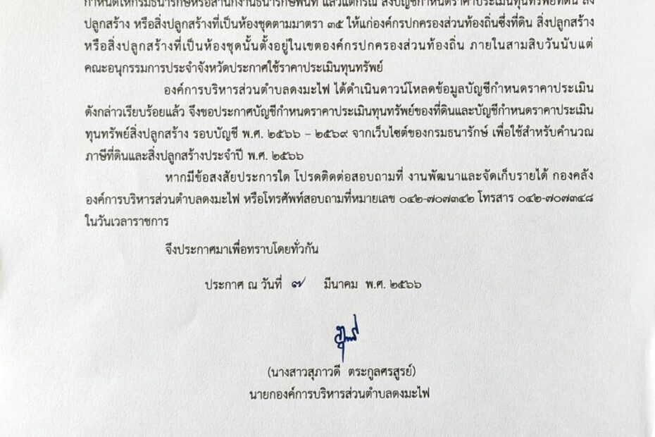 ประกาศองค์การบริหารส่วนตำบลดงมะไฟ เรื่อง บัญชีรายการที่ดินและสิ่งปลูกสร้าง ประจำปี พ.ศ. 2567ข่าวประชาสัมพันธ์by กองคลัง อบต.ดงมะไฟ22 ธันวาคม 2023