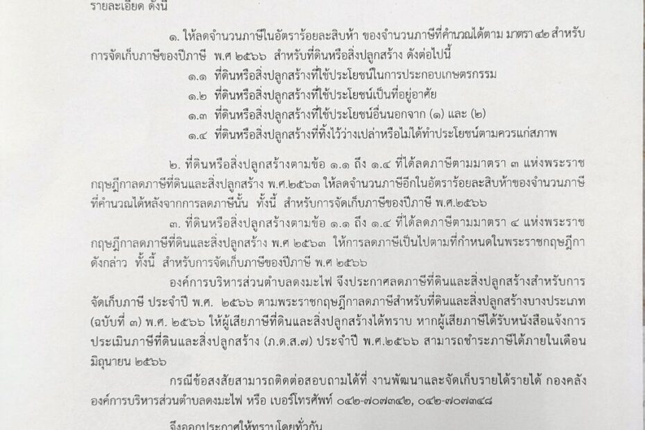 ประกาศขยายกำหนดเวลาดำเนินการตามพระราชบัญญัติภาษีที่ดินและสิ่งปลูกสร้าง พ.ศ. 2562 ประจำปี พ.ศ. 2567ข่าวประชาสัมพันธ์by กองคลัง อบต.ดงมะไฟ17 พฤศจิกายน 2023