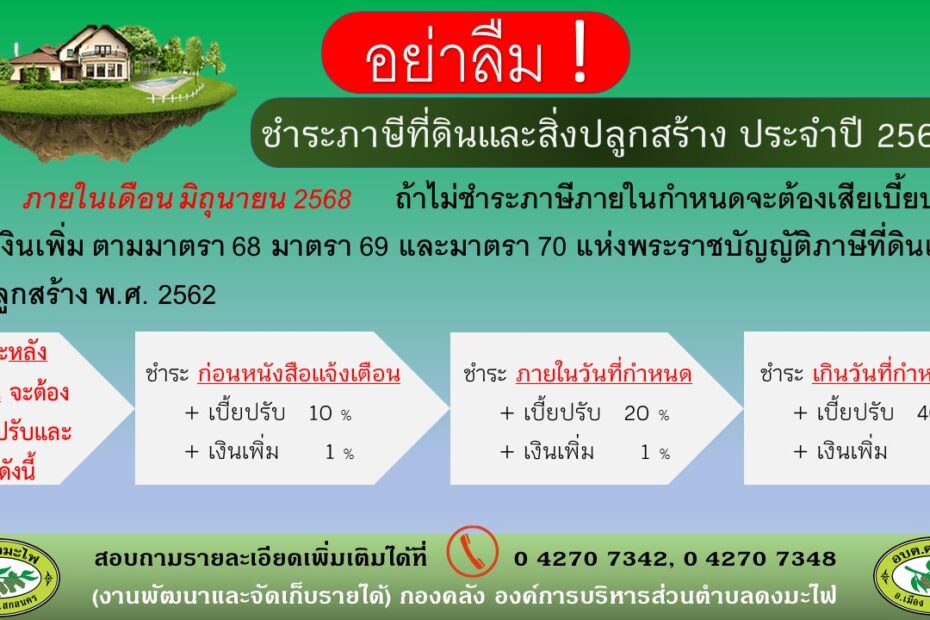 อย่าลืมไปชำระภาษีที่ดินและสิ่งปลูกสร้าง ประจำปี 2568highlight, ข่าวประชาสัมพันธ์by Super admin25 มิถุนายน 202525 มิถุนายน 2025