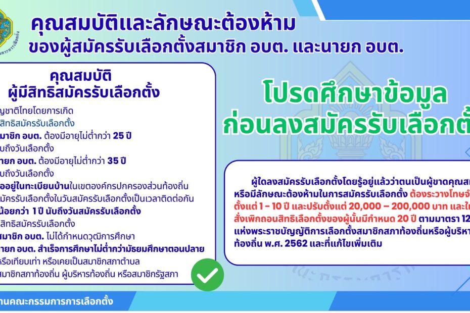 คุณสมบัติและลักษณะต้องห้าม ของผู้สมัครรับเลือก ส.อบต.highlight, เลือกตั้ง อบต.by Super admin8 ตุลาคม 2025