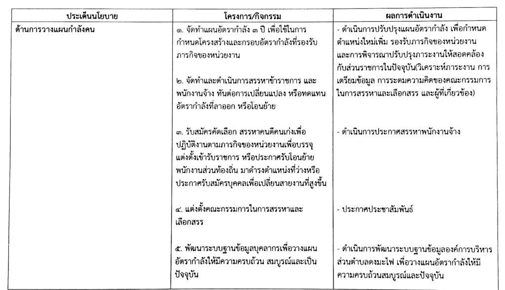 การดำเนินการตามนโยบาย การบริหารทรัพยากรบุคคล ประจำปี 2566