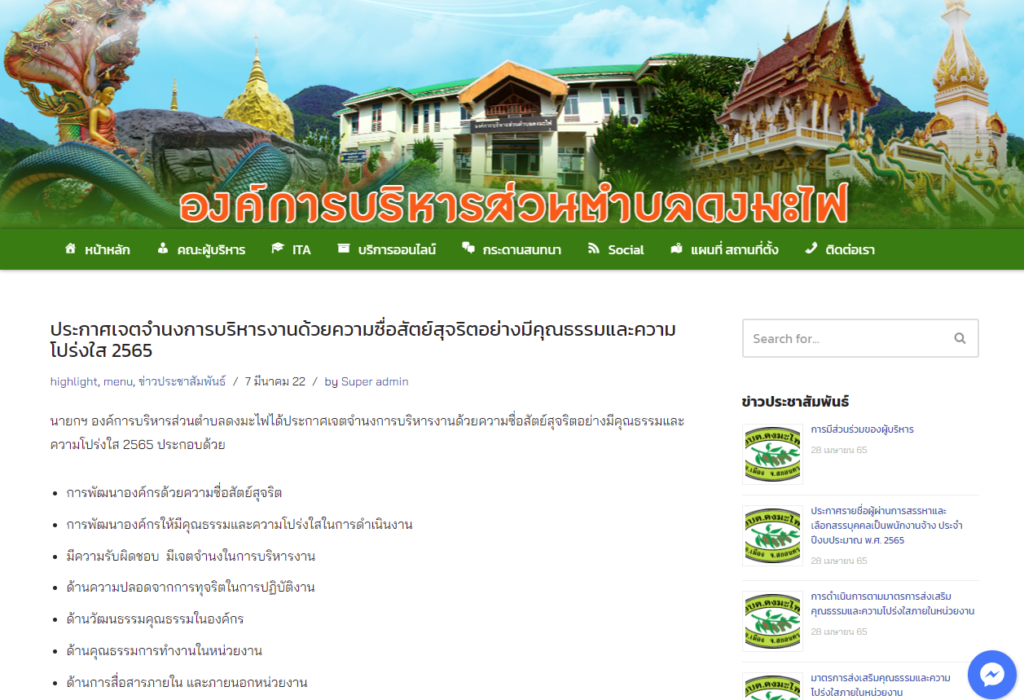 นายกฯ องค์การบริหารส่วนตำบลดงมะไฟได้ประกาศเจตจำนงการบริหารงานด้วยความซื่อสัตย์สุจริตอย่างมีคุณธรรมและความโปร่งใส 2565 ประกอบด้วย