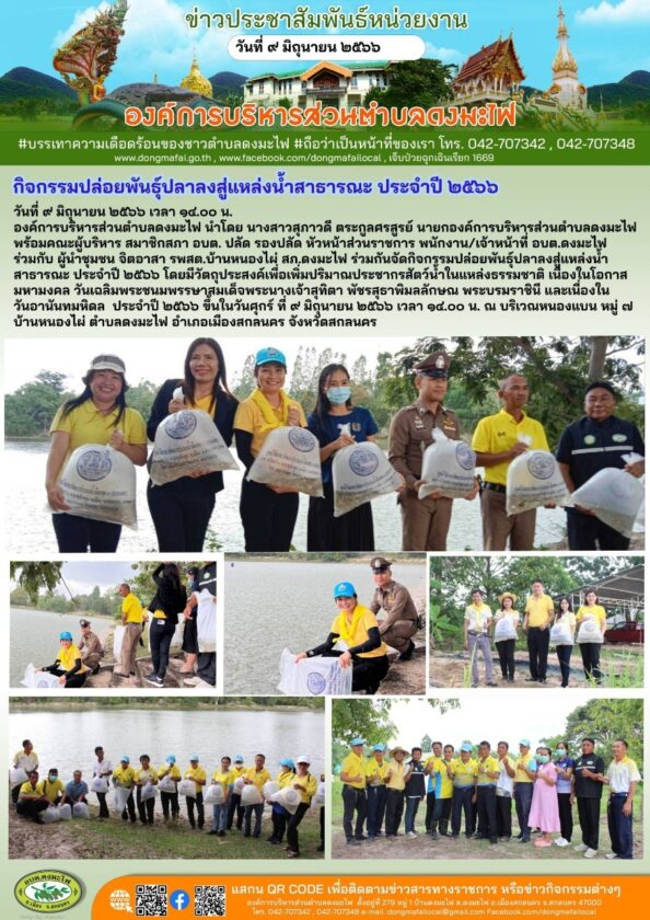 กิจกรรมปล่อยพันธ์ุปลาลงสู่แหล่งน้ำสาธารณะ ประจำปี ๒๕๖๖ข่าวประชาสัมพันธ์by buntheingกิจกรรมปล่อยพันธ์ุปลาลงสู่แหล่งน้ำสาธารณะ ประจำปี ๒๕๖๖ จำนวนผู้เข้าชม : 234 FacebookFacebookXXLINELine