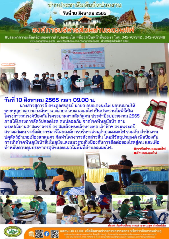 โครงการรณรงค์ป้องกันโรคระบาดจากสัตว์สู่คน ปี 2565ข่าวประชาสัมพันธ์, งานสาธารณสุขby จำนวนผู้เข้าชม : 244 FacebookFacebookXXLINELine