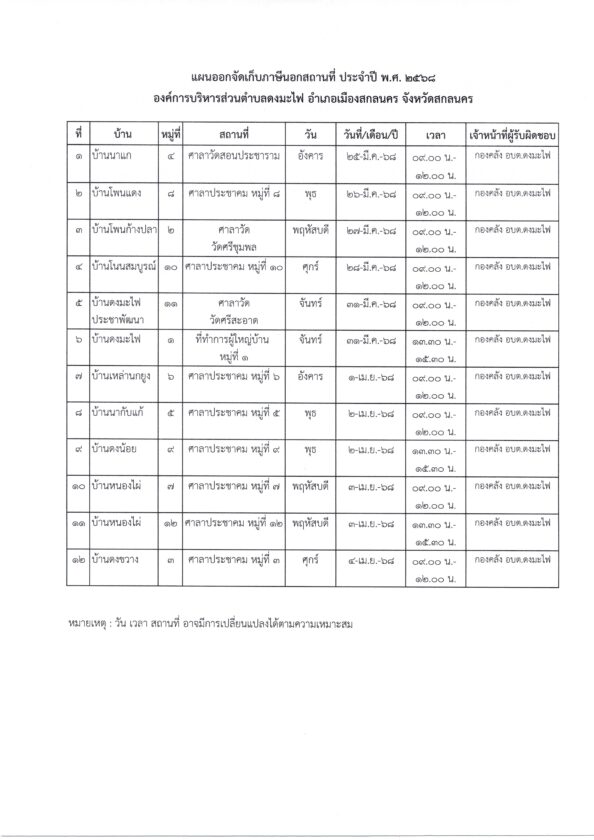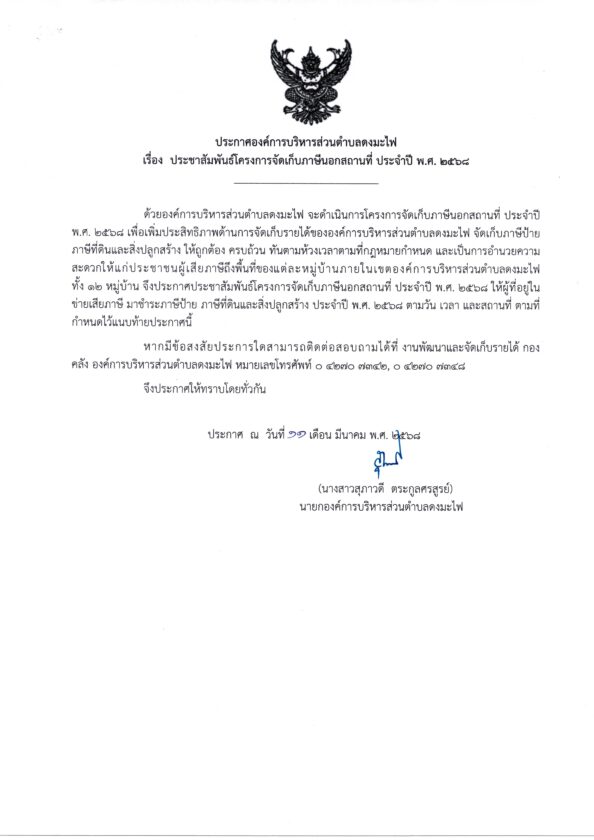 ประกาศองค์การบริหารส่วนตำบลดงมะไฟ เรื่อง ประชาสัมพันธ์โครงการจัดเก็บภาษีนอกสถานที่ ประจำปี พ.ศ. 2568ข่าวประชาสัมพันธ์by กองคลัง อบต.ดงมะไฟประกาศองค์การบริหารส่วนตำบลดงมะไฟ เรื่อง ประชาสัมพันธ์โครงการจัดเก็บภาษีนอกสถานที่ ประจำปี พ.ศ. 2568 จำนวนผู้เข้าชม : 140 FacebookFacebookXXLINELine