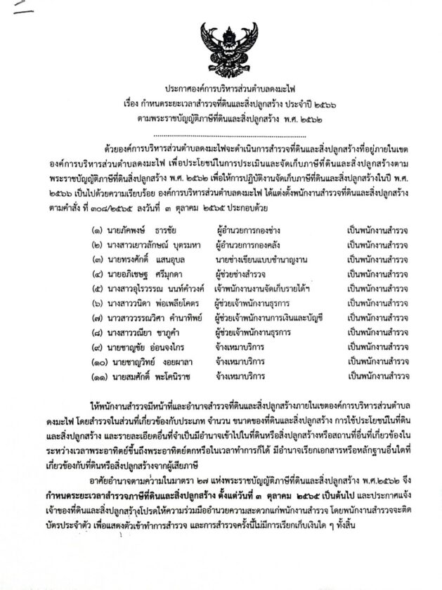 ประกาศกำหนดระยะเวลาสำรวจที่ดินและสิ่งปลูกสร้าง ประจำปี 2566ข่าวประชาสัมพันธ์by buntheing จำนวนผู้เข้าชม : 311 FacebookFacebookXXLINELine
