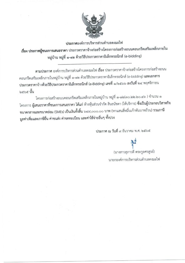 ประกาศผู้ชนะการเสนอราคา ประกวดราคาจ้างก่อสร้างโครงการก่อสร้างถนนคอนกรีตเสริมเหล็กในหมู่บ้าน หมู่ 1-12 ด้วยวิธีประกวดราคาอิเล็กทรอนิกส์(e-bidding)ประกาศจัดซื้อจัดจ้างby กองคลัง อบต.ดงมะไฟ จำนวนผู้เข้าชม : 441 FacebookFacebookXXLINELine