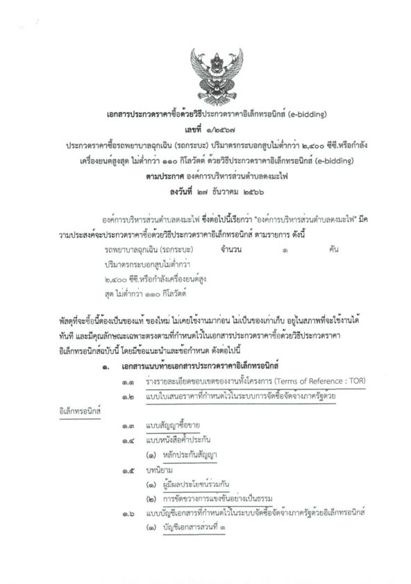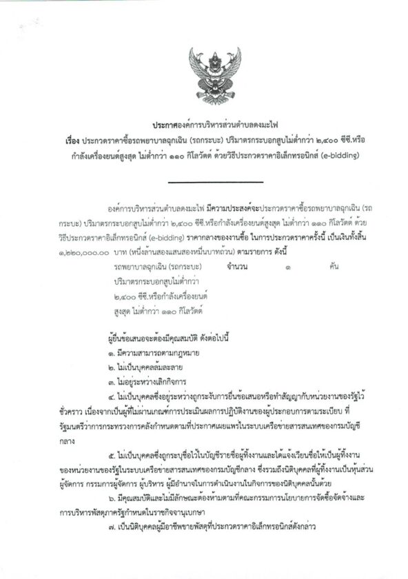 ประกาศประกวดราคาซื้อรถพยาบาลฉุกเฉิน (รถกระบะ) ปริมาตรกระบอกสูบไม่ต่ำกว่า ๒,๔๐๐ ซีซี.หรือกำลังเครื่องยนต์สูงสุด ไม่ต่ำกว่า ๑๑๐ กิโลวัตต์