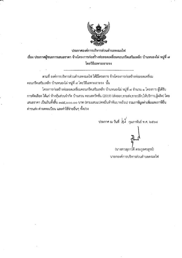 ประกาศผู้ชนะการเสนอราคา จ้างโครงการก่อสร้างท่อลอดเหลี่ยมคอนกรีตเสริมเหล็ก บ้านหนองไผ่ หมู่ที่ ๗ประกาศจัดซื้อจัดจ้างby กองคลัง อบต.ดงมะไฟประกาศผู้ชนะการเสนอราคา จ้างโครงการก่อสร้างท่อลอดเหลี่ยมคอนกรีตเสริมเหล็ก บ้านหนองไผ่ หมู่ที่ ๗ จำนวนผู้เข้าชม : 156 FacebookFacebookXXLINELine