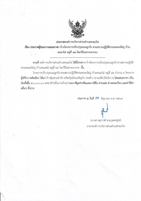 ประกาศผู้ชนะการเสนอราคา จ้างโครงการปรับปรุงถนนลูกรัง สายสถานปฏิบัติธรรมหนองไผ่ภู บ้านหนองไผ่ หมู่ที่ ๑๒ประกาศจัดซื้อจัดจ้างby กองคลัง อบต.ดงมะไฟประกาศผู้ชนะการเสนอราคา จ้างโครงการปรับปรุงถนนลูกรัง สายสถานปฏิบัติธรรมหนองไผ่ภู บ้านหนองไผ่ หมู่ที่ ๑๒ จำนวนผู้เข้าชม : 118 FacebookFacebookXXLINELine