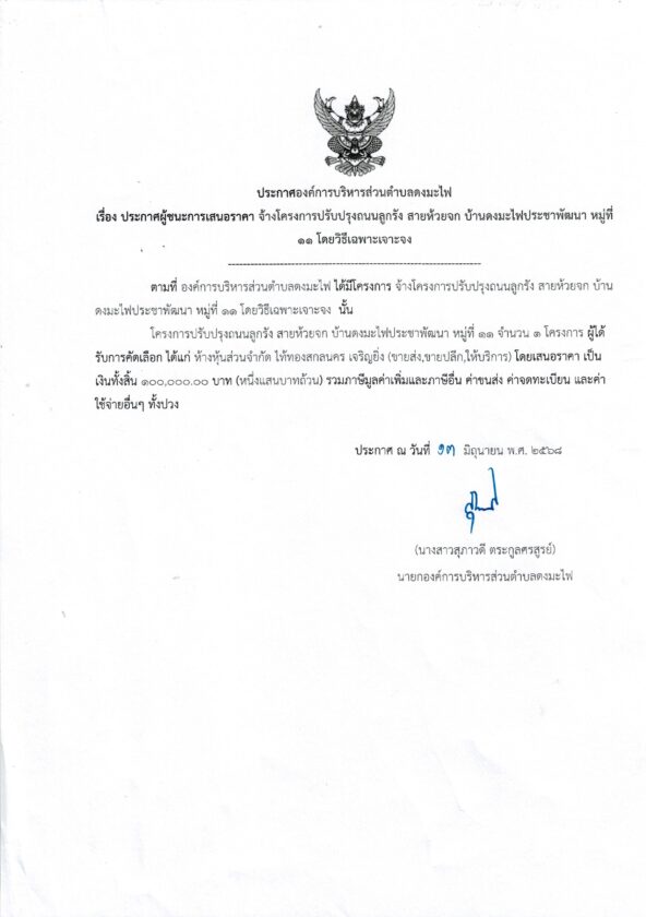 ประกาศผู้ชนะการเสนอราคา จ้างโครงการปรับปรุงถนนลูกรัง สายห้วยจก บ้านดงมะไฟประชาพัฒนา หมู่ที่ ๑๑ประกาศจัดซื้อจัดจ้างby กองคลัง อบต.ดงมะไฟประกาศผู้ชนะการเสนอราคา จ้างโครงการปรับปรุงถนนลูกรัง สายห้วยจก บ้านดงมะไฟประชาพัฒนา หมู่ที่ ๑๑ จำนวนผู้เข้าชม : 156 FacebookFacebookXXLINELine