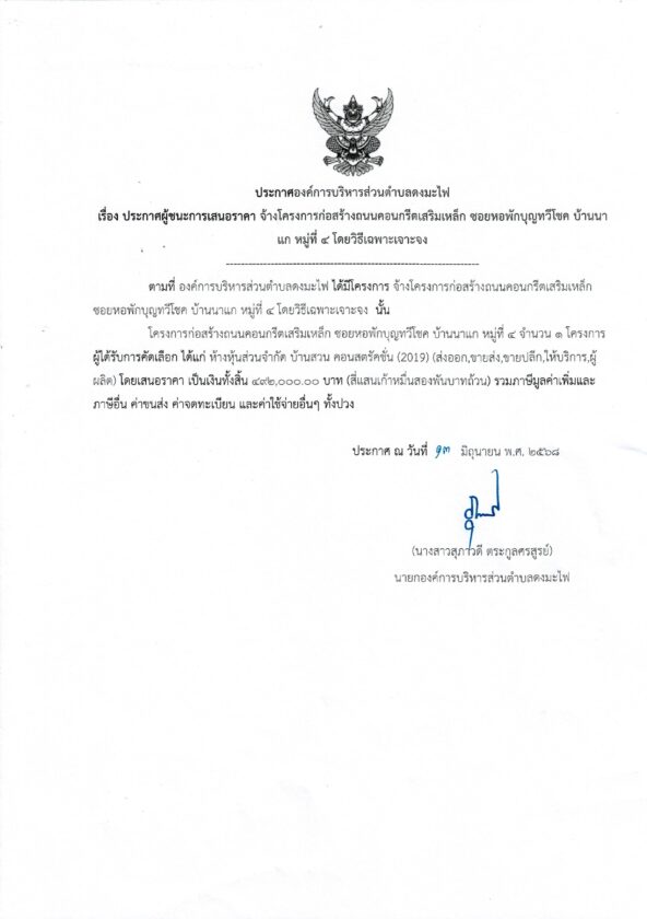 ประกาศผู้ชนะการเสนอราคา จ้างโครงการก่อสร้างถนนคอนกรีตเสริมเหล็ก ซอยหอพักบุญทวีโชค บ้านนาแก หมู่ที่ ๔ประกาศจัดซื้อจัดจ้างby กองคลัง อบต.ดงมะไฟประกาศผู้ชนะการเสนอราคา จ้างโครงการก่อสร้างถนนคอนกรีตเสริมเหล็ก ซอยหอพักบุญทวีโชค บ้านนาแก หมู่ที่ ๔ จำนวนผู้เข้าชม : 172 FacebookFacebookXXLINELine