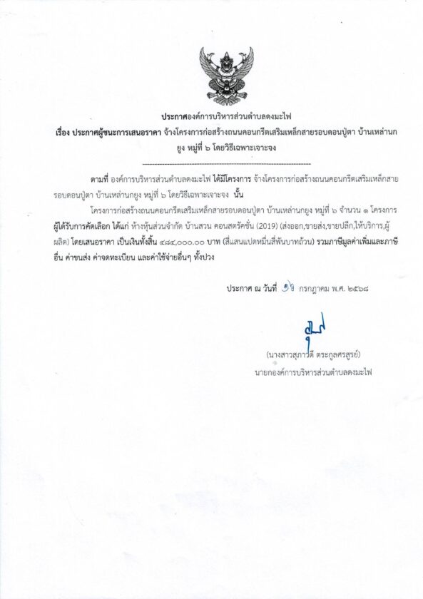 ประกาศผู้ชนะการเสนอราคา จ้างโครงการก่อสร้างถนนคอนกรีตเสริมเหล็กสายรอบดอนปู่ตา บ้านเหล่านกยูง หมู่ที่ ๖ประกาศจัดซื้อจัดจ้างby กองคลัง อบต.ดงมะไฟประกาศผู้ชนะการเสนอราคา จ้างโครงการก่อสร้างถนนคอนกรีตเสริมเหล็กสายรอบดอนปู่ตา บ้านเหล่านกยูง หมู่ที่ ๖ จำนวนผู้เข้าชม : 121 FacebookFacebookXXLINELine