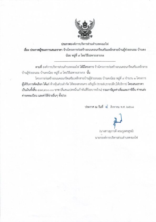 ประกาศผู้ชนะการเสนอราคา จ้างโครงการก่อสร้างถนนคอนกรีตเสริมเหล็กสายบ้านผู้ช่วยถนอม บ้านดงน้อย หมู่ที่ ๙ประกาศจัดซื้อจัดจ้างby กองคลัง อบต.ดงมะไฟประกาศผู้ชนะการเสนอราคา จ้างโครงการก่อสร้างถนนคอนกรีตเสริมเหล็กสายบ้านผู้ช่วยถนอม บ้านดงน้อย หมู่ที่ ๙ จำนวนผู้เข้าชม : 116 FacebookFacebookXXLINELine