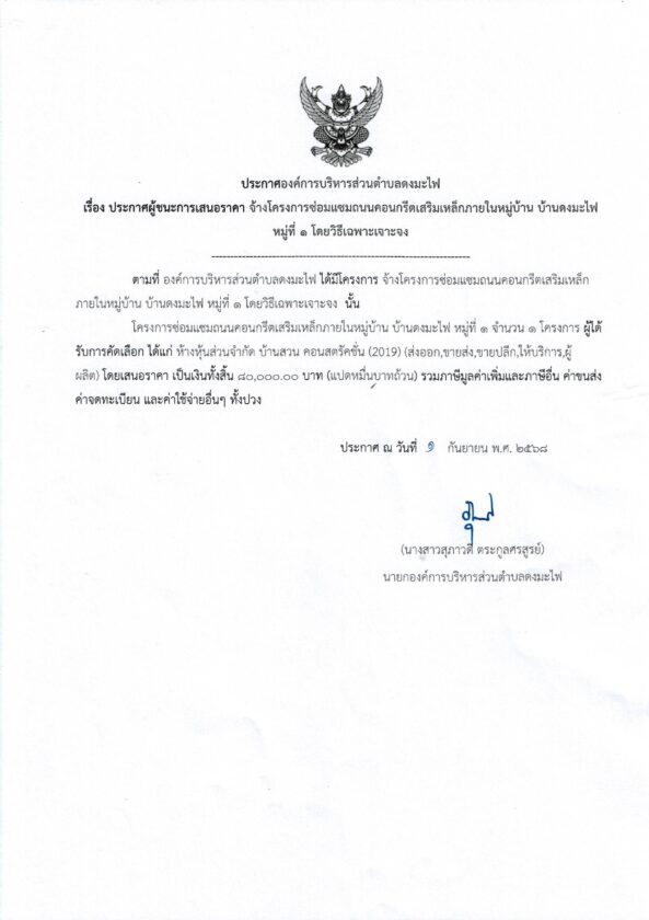 ประกาศผู้ชนะการเสนอราคา จ้างโครงการซ่อมแซมถนนคอนกรีตเสริมเหล็กภายในหมู่บ้าน บ้านดงมะไฟ หมู่ที่ ๑ประกาศจัดซื้อจัดจ้างby กองคลัง อบต.ดงมะไฟประกาศผู้ชนะการเสนอราคา จ้างโครงการซ่อมแซมถนนคอนกรีตเสริมเหล็กภายในหมู่บ้าน บ้านดงมะไฟ หมู่ที่ ๑ จำนวนผู้เข้าชม : 141 FacebookFacebookXXLINELine