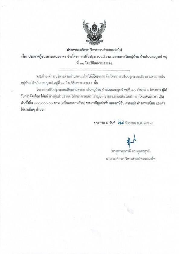 ประกาศผู้ชนะการเสนอราคา จ้างโครงการปรับปรุงระบบเสียงตามสายภายในหมู่บ้าน บ้านโนนสมบูรณ์ หมู่ที่ ๑๐ประกาศจัดซื้อจัดจ้างby กองคลัง อบต.ดงมะไฟประกาศผู้ชนะการเสนอราคา จ้างโครงการปรับปรุงระบบเสียงตามสายภายในหมู่บ้าน บ้านโนนสมบูรณ์ หมู่ที่ ๑๐ จำนวนผู้เข้าชม : 102 FacebookFacebookXXLINELine