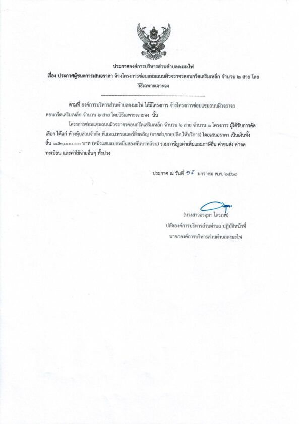 ประกาศผู้ชนะการเสนอราคา จ้างโครงการซ่อมแซมถนนผิวจราจรคอนกรีตเสริมเหล็ก จำนวน ๒ สายประกาศจัดซื้อจัดจ้างby กองคลัง อบต.ดงมะไฟประกาศผู้ชนะการเสนอราคา จ้างโครงการซ่อมแซมถนนผิวจราจรคอนกรีตเสริมเหล็ก จำนวน ๒ สาย จำนวนผู้เข้าชม : 50 FacebookFacebookXXLINELine