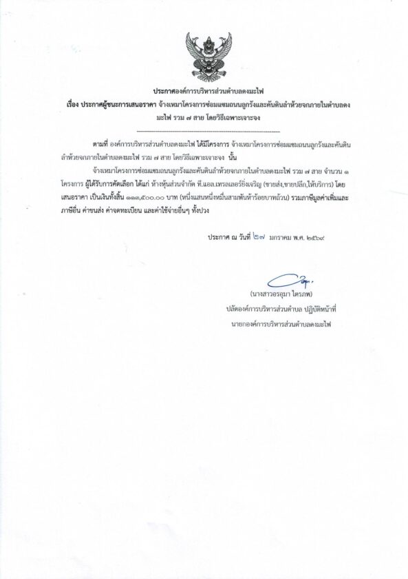 ประกาศผู้ชนะการเสนอราคา จ้างเหมาโครงการซ่อมแซมถนนลูกรังและคันดินลำห้วยจกภายในตำบลดงมะไฟ รวม ๗ สายประกาศจัดซื้อจัดจ้างby กองคลัง อบต.ดงมะไฟประกาศผู้ชนะการเสนอราคา จ้างเหมาโครงการซ่อมแซมถนนลูกรังและคันดินลำห้วยจกภายในตำบลดงมะไฟ รวม ๗ สาย จำนวนผู้เข้าชม : 26 FacebookFacebookXXLINELine